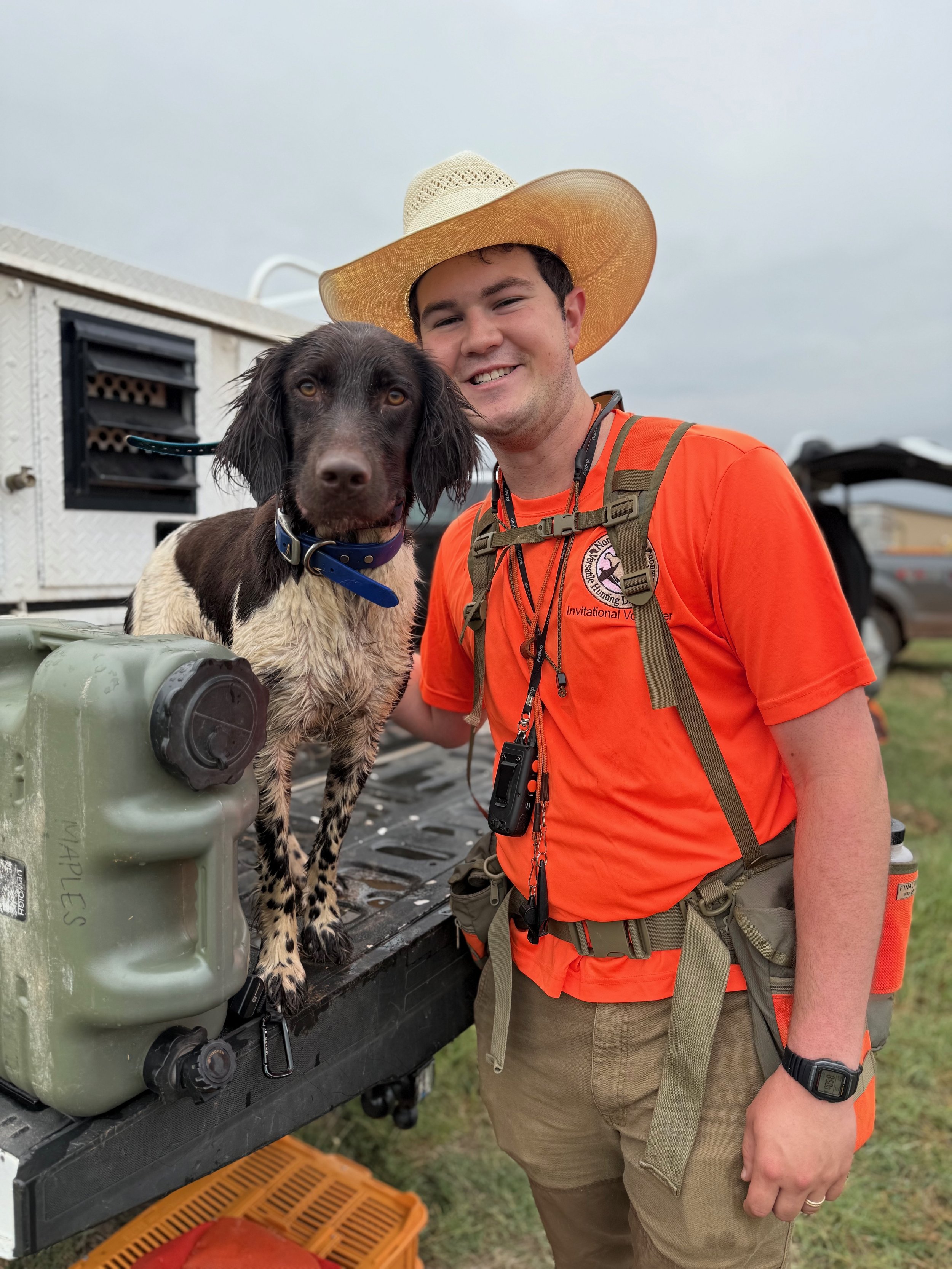Hi! I’m Blake Robbins, your 2026 OK NAVDHA Secretary. I am a graduate student at Oklahoma State University studying animal science. I have a one year old small munterlander named Teddy. While I am relatively new to the NAVHDA world, I am very excited to serve our chapter in this capacity. I have ran Teddy in his NA test and served as a Utility Gunner.